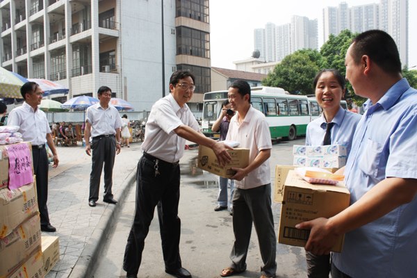 7月30日,市交通運(yùn)輸局黨委書記戴明水、副局長(zhǎng)王衛(wèi)東來到江南商場(chǎng)站和白蕩河公交中心站慰問一線員工。