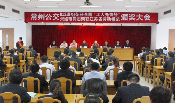 5月4日下午,常州公交B12班組榮獲全國“工人先鋒號”、張婭瑛同志榮獲江蘇省勞動模范頒獎大會在集團公司六樓會場召開。市總工會副主席孫啟江、總工會經濟技術部部長陸國偉、交通運輸局黨委副書記楊紀平、局工會主席楊國俊以及集團公司總經理兼黨委書記蔡健臣、黨委副書記袁杏娣、常務副總經理孫魯明、工會主席劉中龍和員工代表共計110人參加了會議。會議由袁杏娣主持。