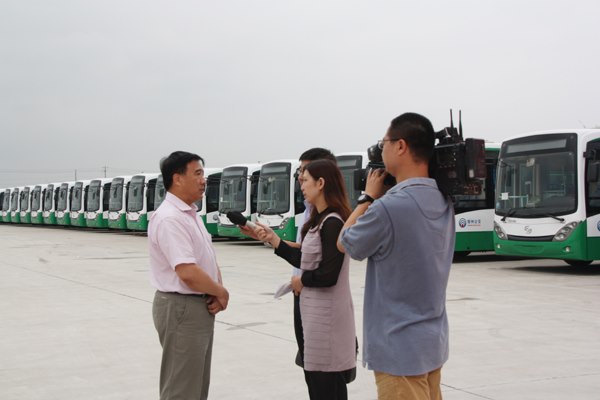 常州公交常務(wù)副總經(jīng)理孫魯明現(xiàn)場接受媒體采訪
