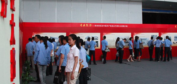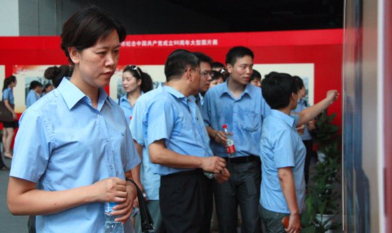 7月7日下午三點(diǎn),常州公交150名員工在集團(tuán)公司黨委副書記袁杏娣的帶領(lǐng)下,參觀了由中共常州市委主辦的“黨旗飄飄——常州市慶祝中國共產(chǎn)黨成立90周年大型圖片展”。