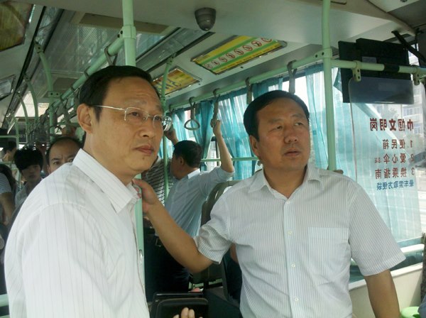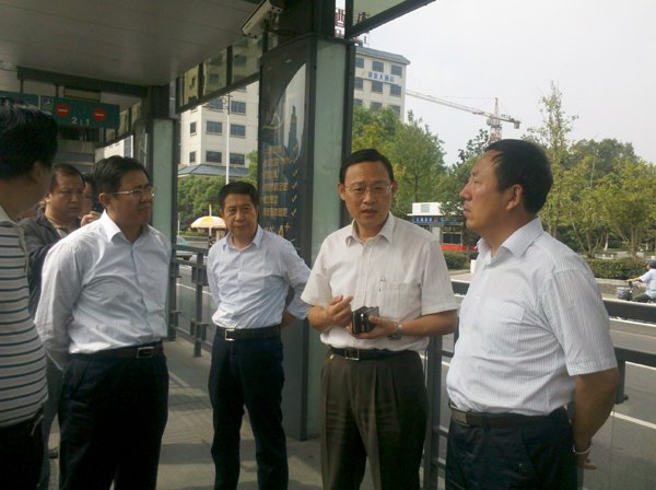 9月7日,呼和浩特市政府副市長(zhǎng)孫建華帶領(lǐng)規(guī)劃局、市容局、城發(fā)公司、公交總公司等領(lǐng)導(dǎo)來常,考察我市快速公交建設(shè)和運(yùn)營(yíng)情況,實(shí)地乘車體驗(yàn)快速公交。公司董事長(zhǎng)、總經(jīng)理蔡健臣陪同考察。