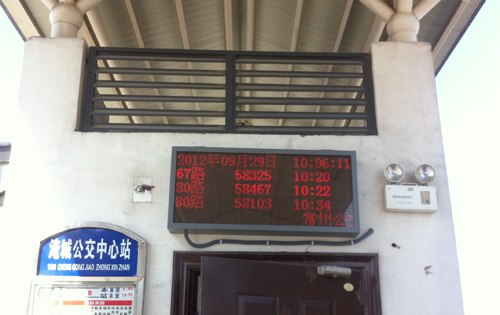 電子發(fā)車屏上主要顯示了發(fā)車線路的當(dāng)班車號(hào)、發(fā)車時(shí)間等多項(xiàng)信息,屏幕上還有電子時(shí)鐘,方便乘客校對(duì)時(shí)間。按照電子發(fā)車屏上顯示的信息及語(yǔ)音提示,乘客能更快、更方便地查找到自己要乘坐的公交車輛。