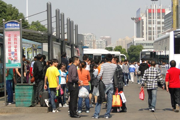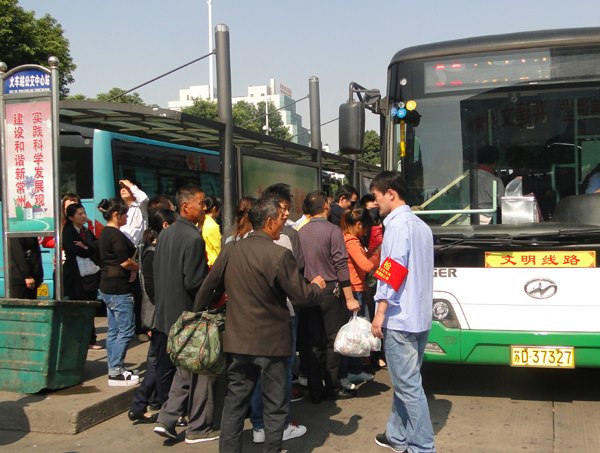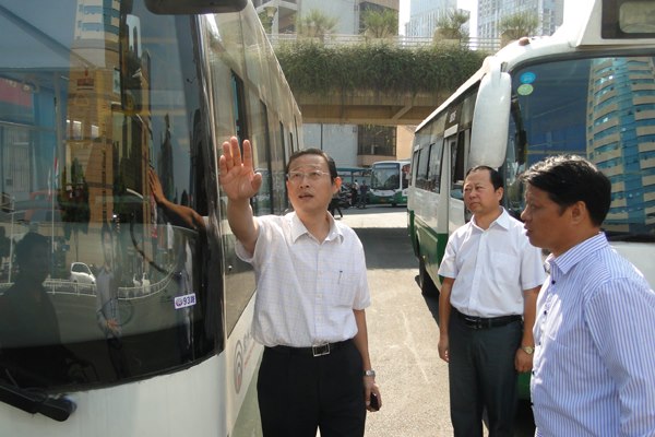 長期以來,“十一”是公交客流的最高峰,今年客流預(yù)計超過140萬人次。上午8點半,集團公司董事長、總經(jīng)理蔡健臣、黨委書記袁杏娣帶領(lǐng)公司全體領(lǐng)導(dǎo)和相關(guān)部門負責(zé)人兵分兩路,到花園、江南、火車站東廣場、火車站北廣場、恐龍園、白蕩河、湖塘陽湖廣場、紅梅中心站等主要公交樞紐和客流集散地察看節(jié)日運營組織情況。