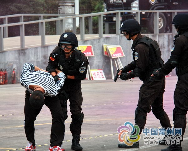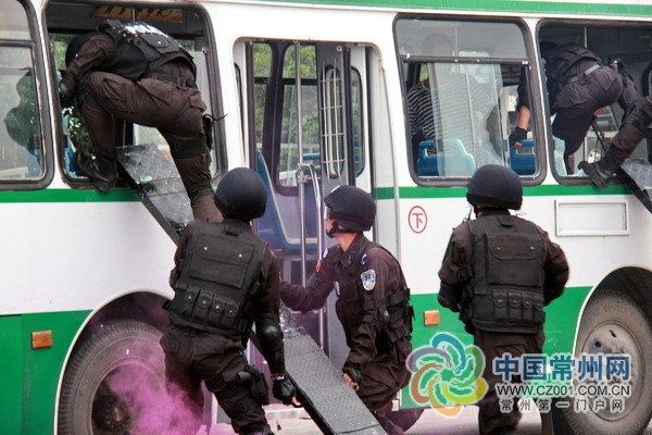 記者在現(xiàn)場看到,當(dāng)公交車司機(jī)向集團(tuán)公司報警后,公司領(lǐng)導(dǎo)第一時間通過35路的車內(nèi)探頭適時觀察歹徒的一舉一動。同時,特警支隊立即出動攔截被挾持車輛。“我是談判專家,我只有一人,不會對你構(gòu)成危險。”在警方第一支部隊截住35路公交車時,一名談判專家出現(xiàn)在現(xiàn)場,和歹徒進(jìn)行談判。最后以提供另外一輛更快捷的車輛作為交換條件,歹徒同意釋放公交車內(nèi)15名乘客。同時,乘其不備,特警部隊偷偷行動,以迅雷的速度包圍車輛,成功逮捕歹徒。整個演練過程緊張、逼真,給在場的公交車駕駛員上了一堂生動的反恐演練。
