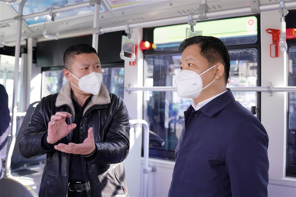 狄志強聽取了2022年公交安全和春運工作匯報,觀看了公交安全文化宣傳展板,詢問了公交運量及排班安排,并踏上新能源車進行體驗。狄志強肯定了公交在便民出行、安全管理方面的工作,要求準(zhǔn)確研判疫情防控政策調(diào)整后市民出行的新變化,統(tǒng)籌發(fā)展和安全,堅持“兩個至上”,始終把安全生產(chǎn)放在首要位置,層層夯實責(zé)任,強化工作舉措,全力做好春運及春節(jié)期間的安全管理和運營服務(wù),為老百姓平安過節(jié)提供保障。